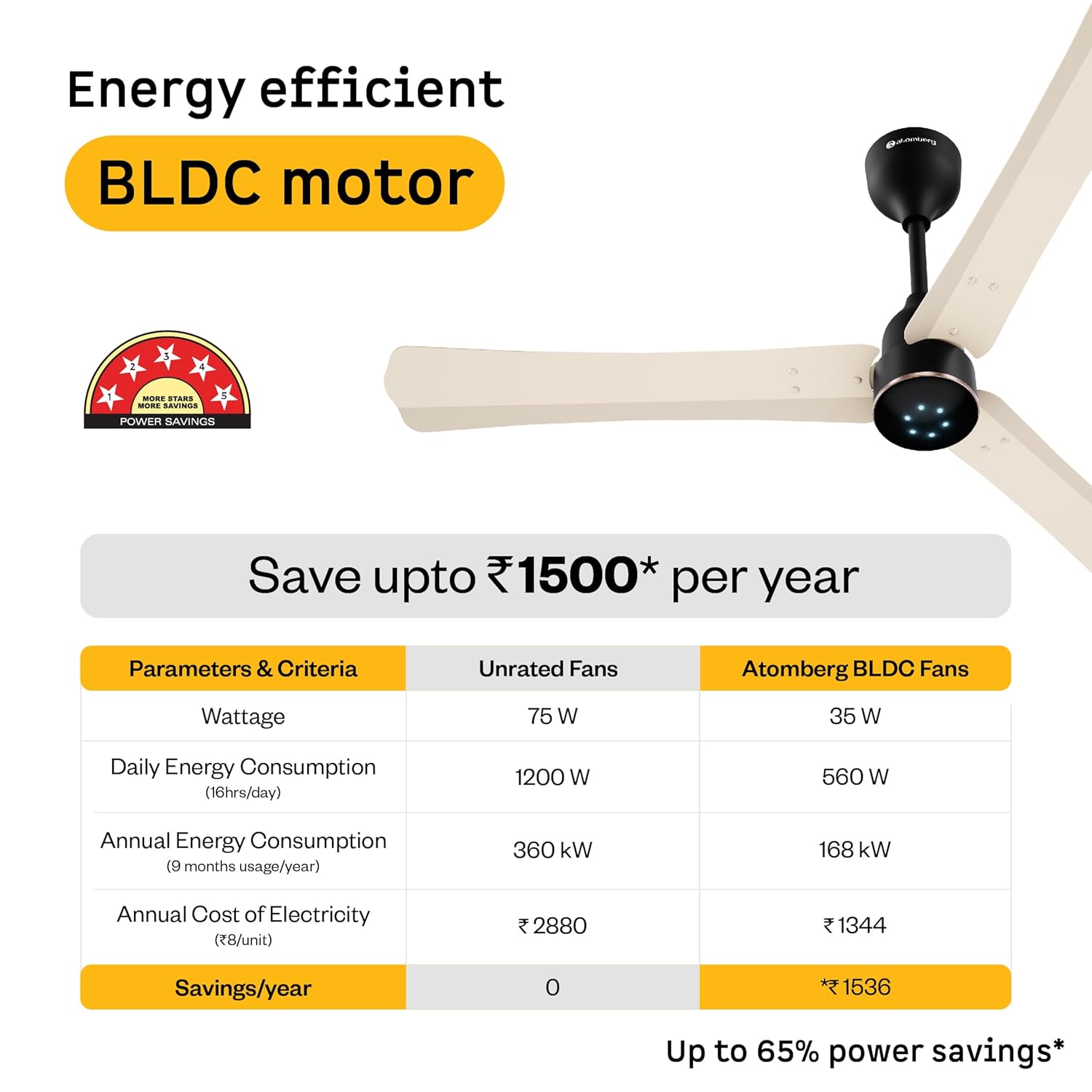 - WHY CHOOSE ATOMBERG? As the pioneers of BLDC technology in India, Atomberg offers the largest range of BLDC fans to suit every need. With revolutionary smart fan technology, lowest-in-class failure rates, top ratings across E-commerce platforms, and the widest doorstep service network—we’ve earned our place as India’s No. 1 BLDC fans.