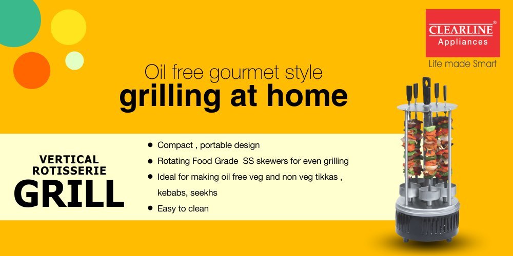 While the rotating stainless steel skewers ensure even cooking, the heat resistant cool handles make it safe to release and serve. Clearline Vertical Rotisserie Grill’s compact design takes very less space of your kitchen. Be prepared to dazzle guests with your culinary skills once you become a proud owner of this latest innovation from Clearline.