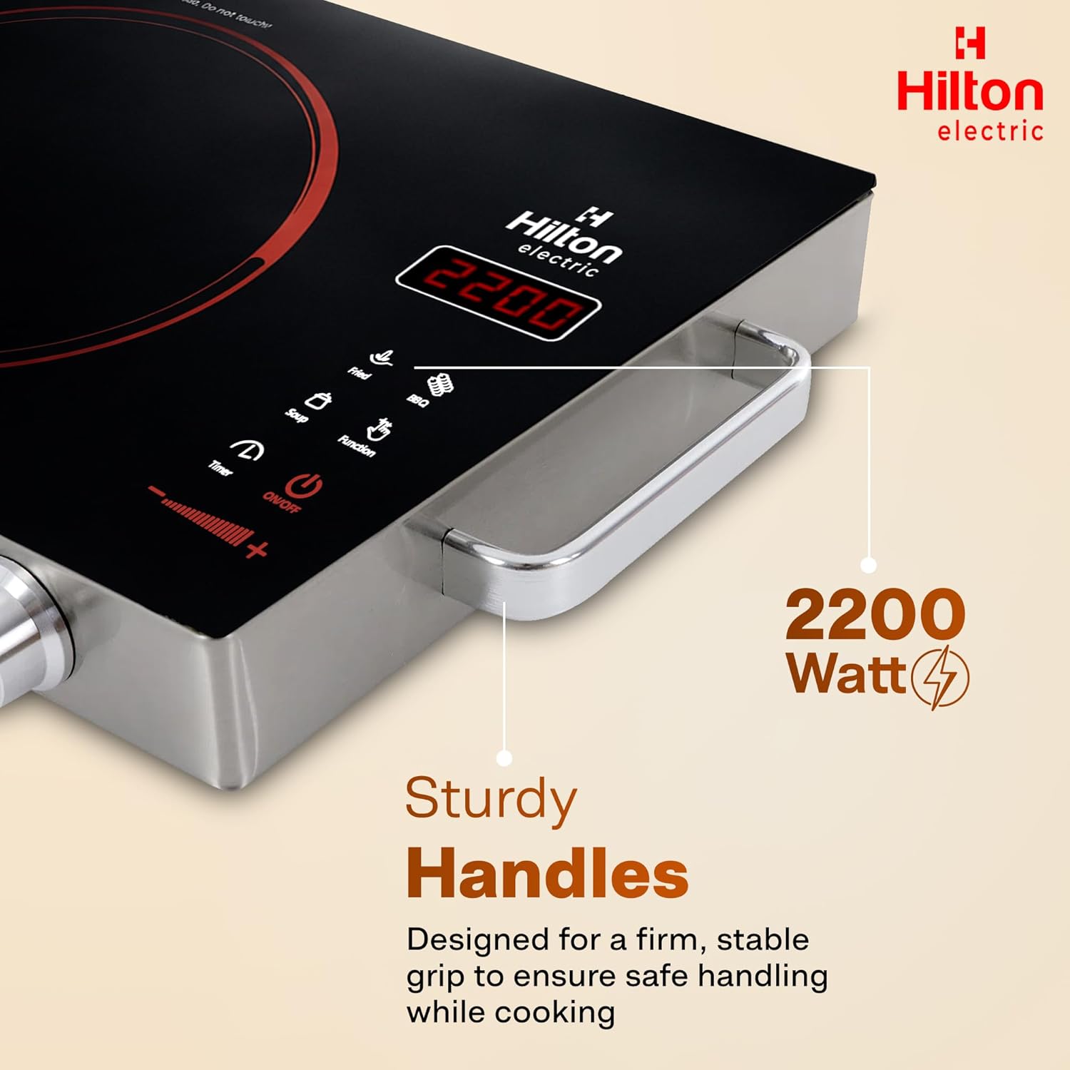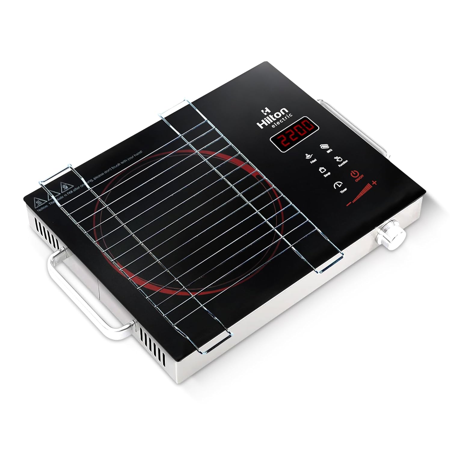 Hilton Electric Premium 2200-watt Radiant Infrared Cooktop with Free Stainless Steel Grill for barbecue |3 Preset Functions | Digital Display |Timer Control | Over Heating Protection(1 Year Warranty)