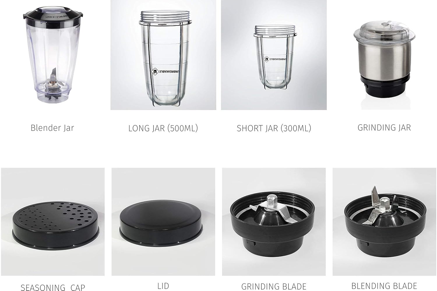 - Package Includes ? 400 Watts Nutri Blender Grinder Mixer Motor Base Units With Operating Voltage Of 230 Volts With One Long Blending Jar, 2 Set Of Transparent Unbreakable Inter-Changeable Jar (500Ml And 300Ml) And One Stainless Steel Grinder Jar With Lids.