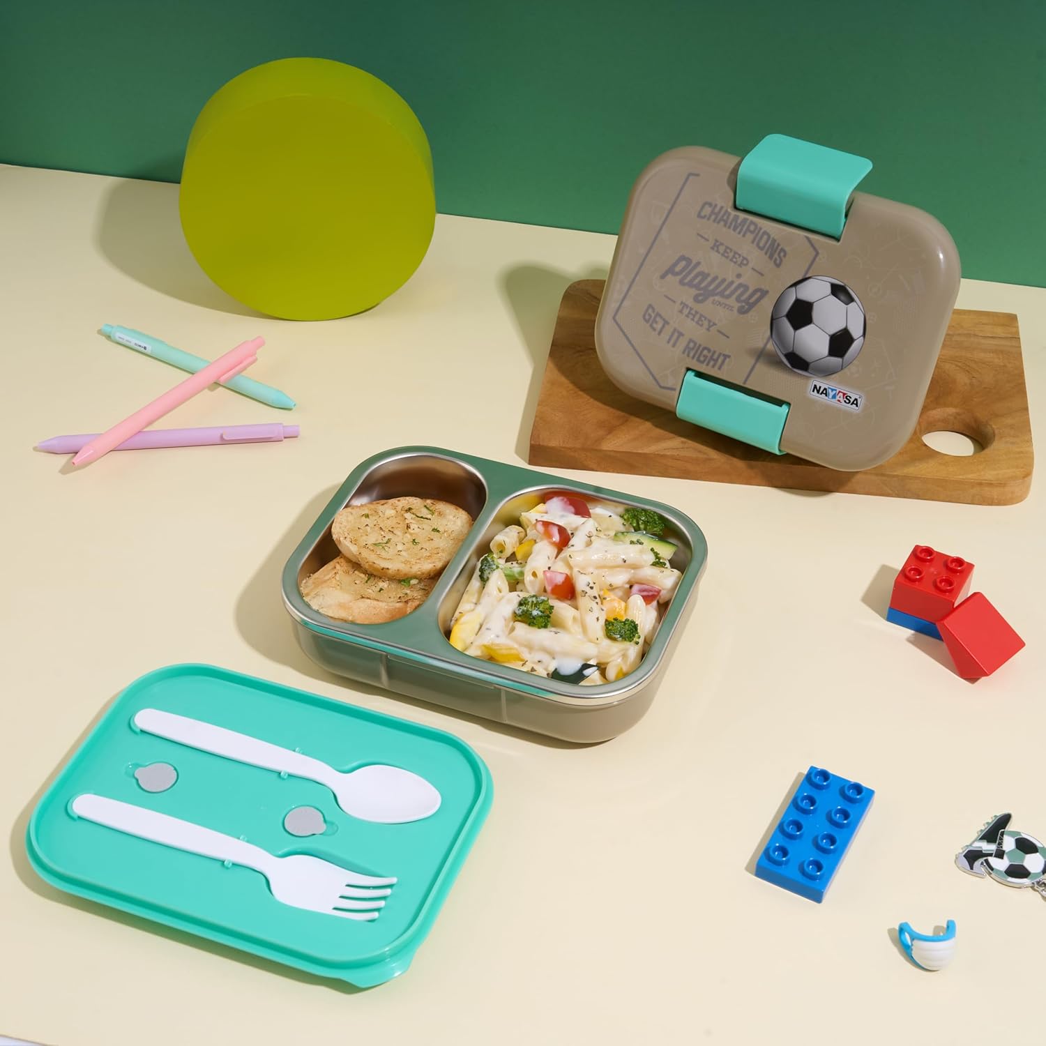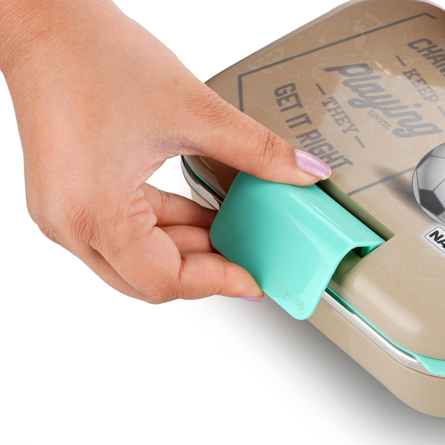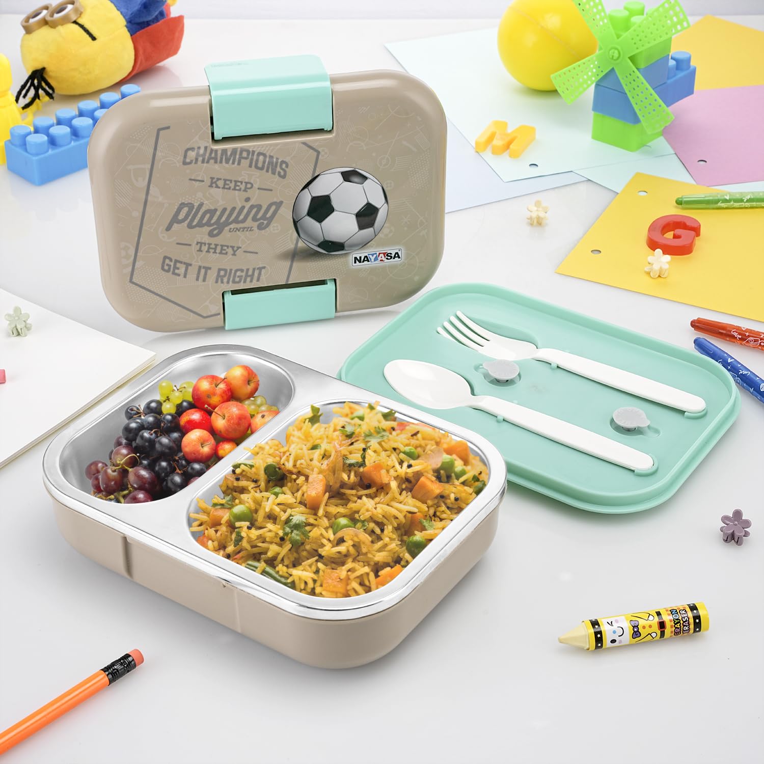 Nayasa Marco 2 Compartment Stainless Steel Insulated Lunch Box for Kids Boys | Football Champion Print | Vacuum Sealed Leak Proof Tiffin Box | 650 ml | Grey