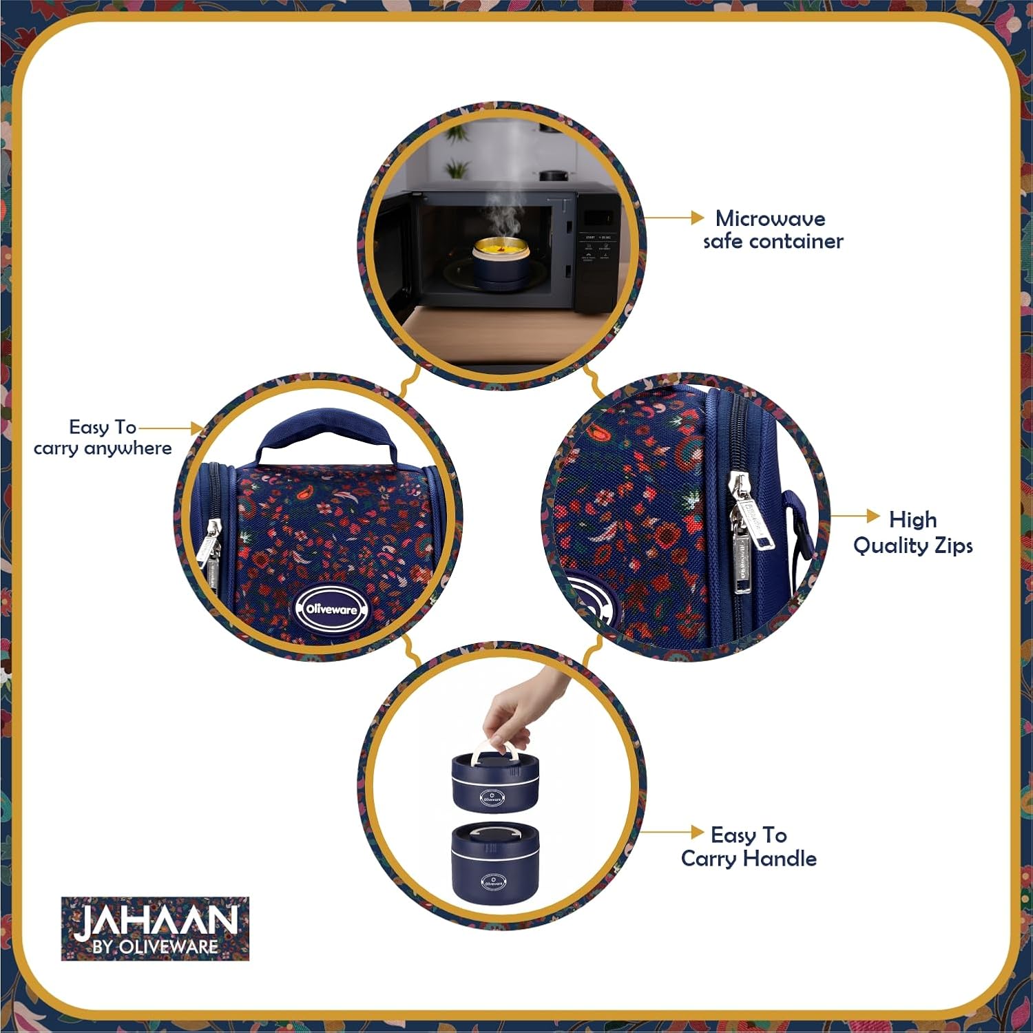 Oliveware TESO Musk Lunch Box | 3 Microwave-Safe Containers (2×420ml, 1×620ml) + 750ml Steel Bottle + 130ml Pickle Box + Steel Cutlery | Premium Carry Bag | Freezer & Dishwasher Safe (Blue)