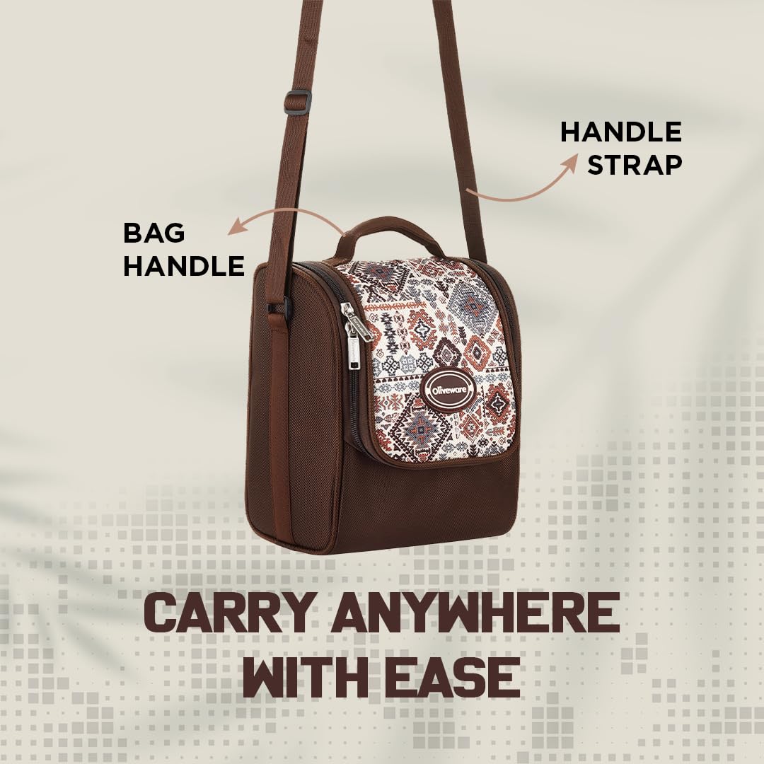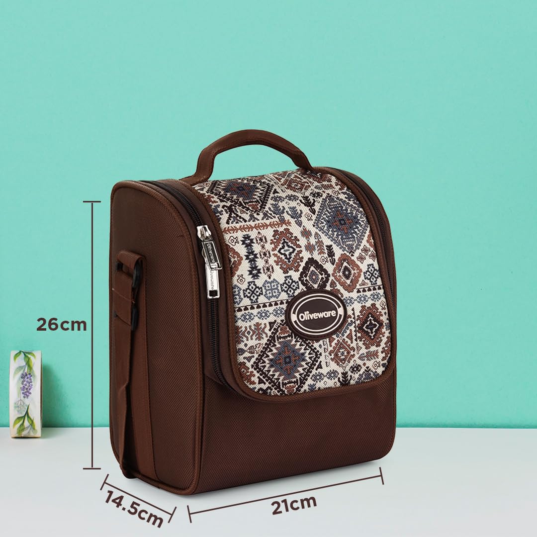 oliveware TESO Musk Lunch Box | 3 Microwave-Safe Containers (2×420ml, 1×620ml) + 750ml Steel Bottle + 130ml Pickle Box + Steel Cutlery | Premium Carry Bag | Freezer & Dishwasher Safe (Brown)