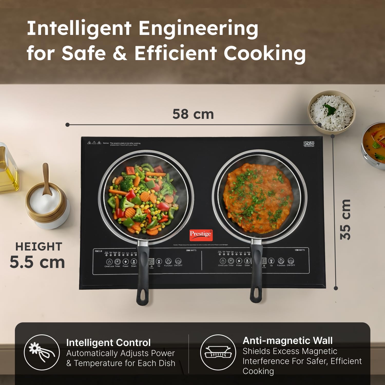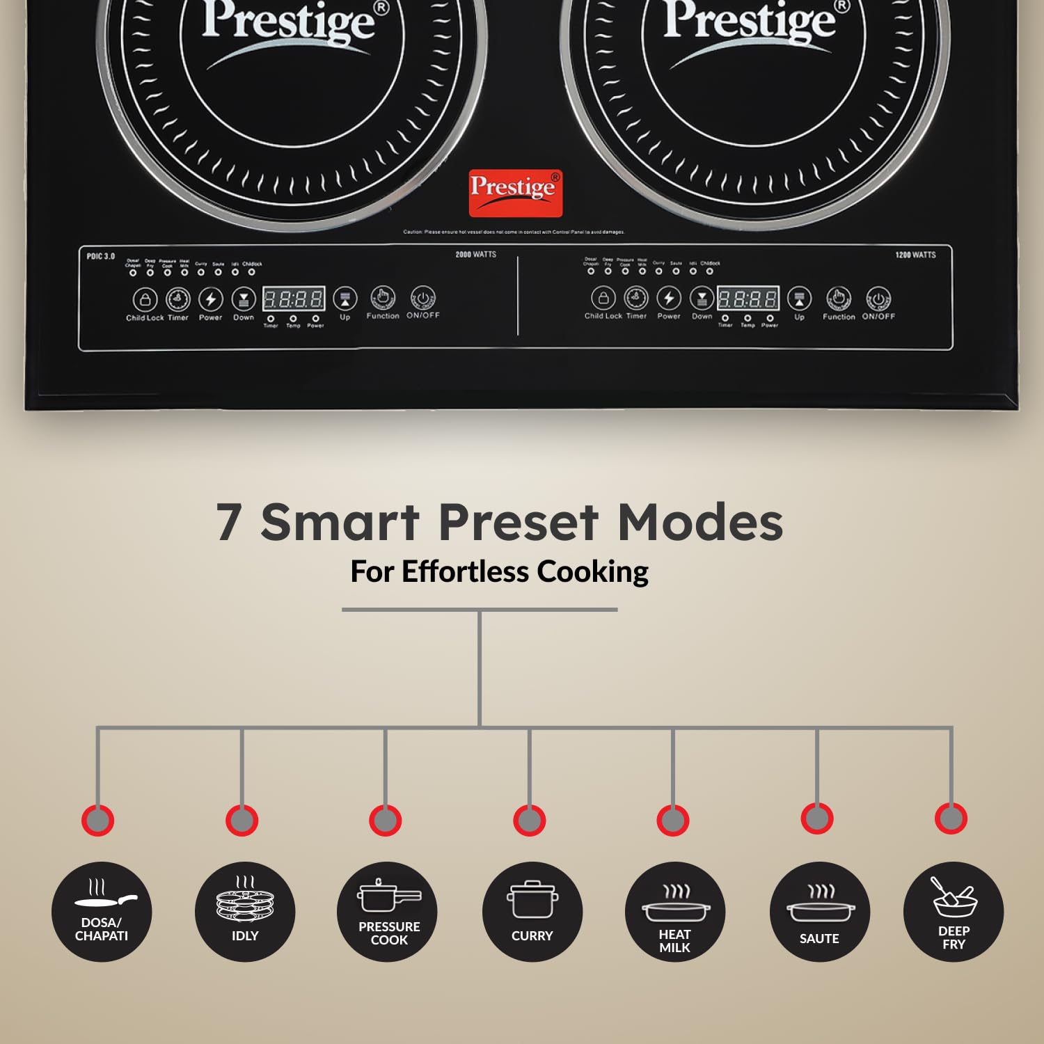Prestige PDIC 3.0 Double Induction Cooktop(3200W, Black, 2 Burner Induction Stove)