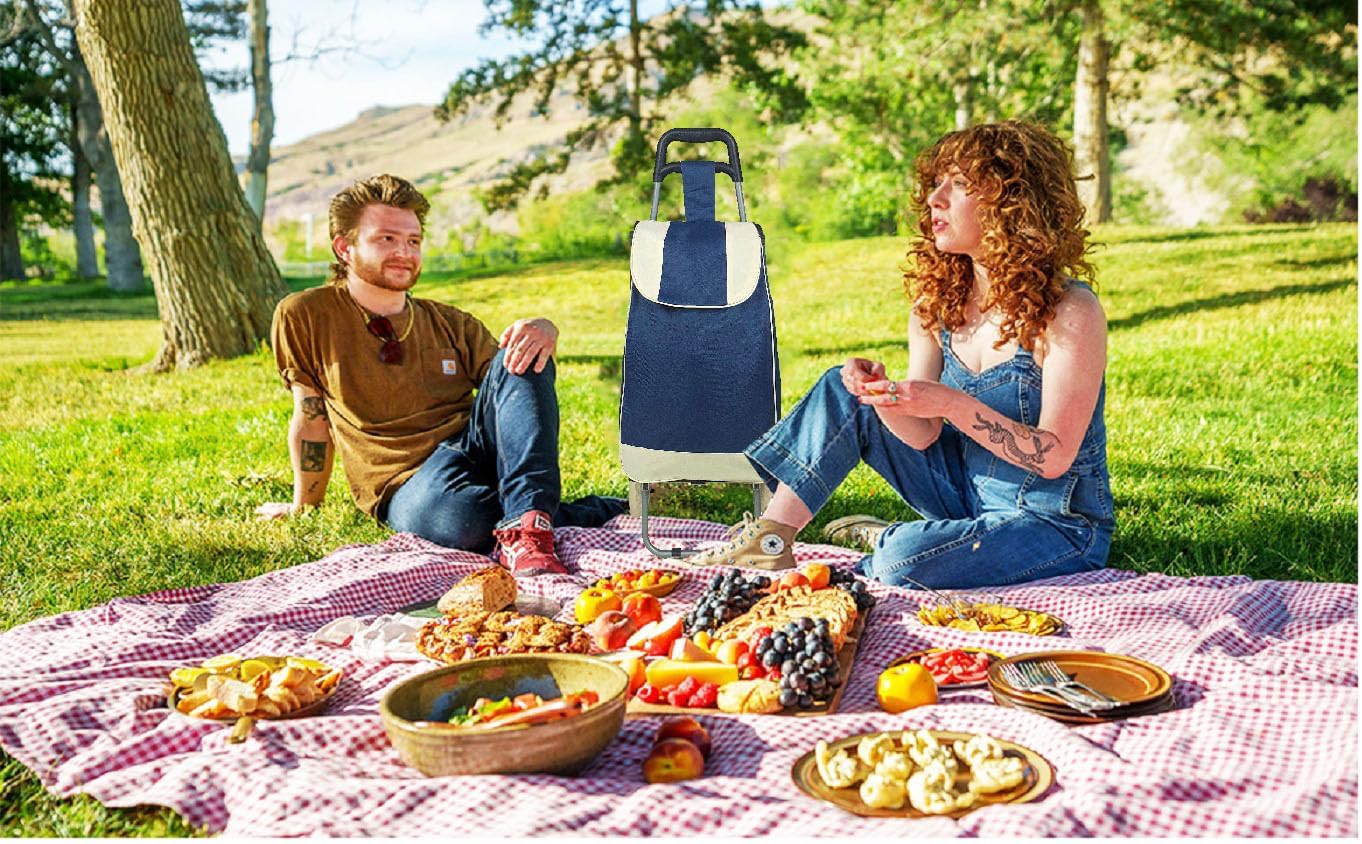 Multipurpose Foldable Shopping Trolly with Removable Bag Shopping Cart for Grocery, Fruit, and Vegetable (Blue)
